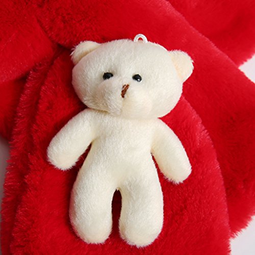 Seliyi ガールズ・キッズ ふわふわ クロス ファー マフラー かわいいワンポイント クマさん (レッド)