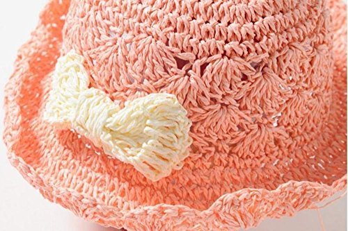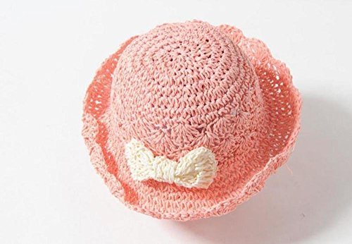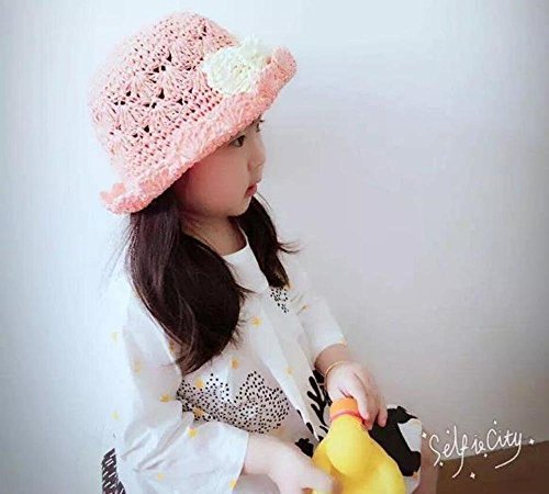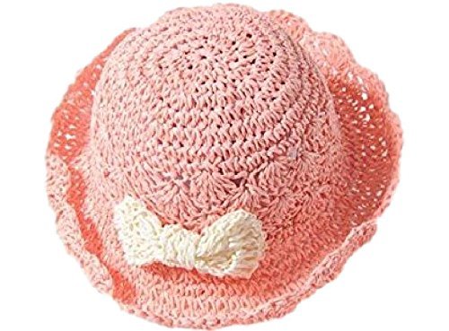 Seliyi ナチュラル キッズ 女の子 かぎ 針 編み リボン 帽子 2way ストロー ハット (ピンク)