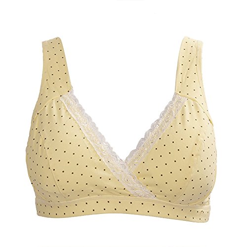 Seliyi 女性のマタニティー授乳用のブラジャー 授乳期の母さんのための下着 ブラジャー 黄色 M