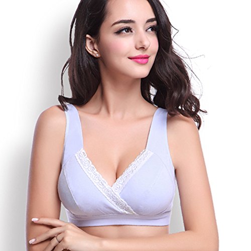 Seliyi女性のマタニティー授乳用のブラジャー 授乳期の母さんのための下着 ブラジャー 紫 L
