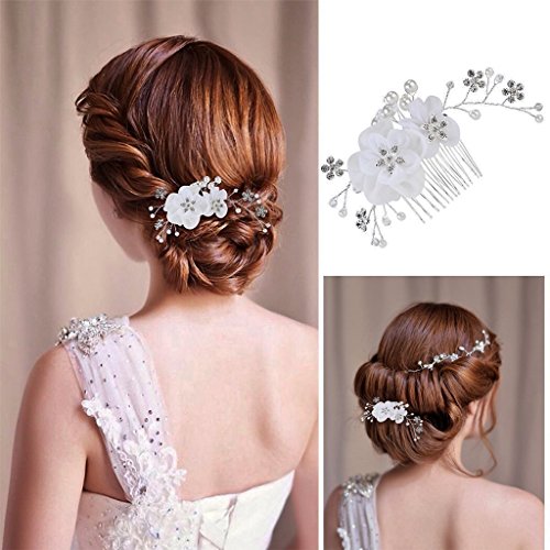 1 *チャーム ブライダル結婚式クリスタル/ラインス トーン真珠女性髪櫛クリップ