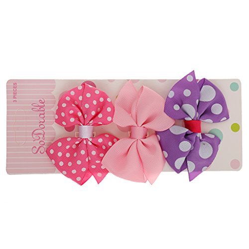 Seliyi 3個 リボン 赤ちゃん 女の子 ヘアクリップ ヘアピン ドット柄 蝶結び クリップ 髪飾り