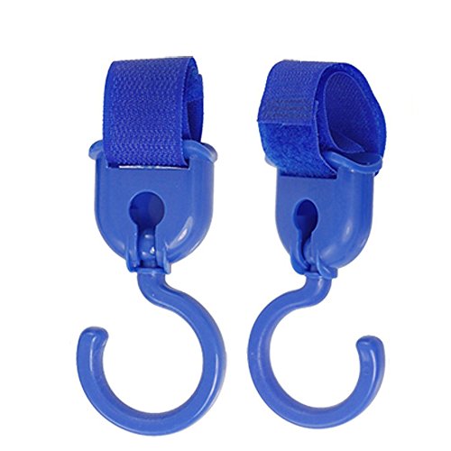 Seliyi ベビーカーハンガーフック ストラップ洋服フックハンガー ナイロン プラスチック 鉄道ベビーカー ブルー 2個