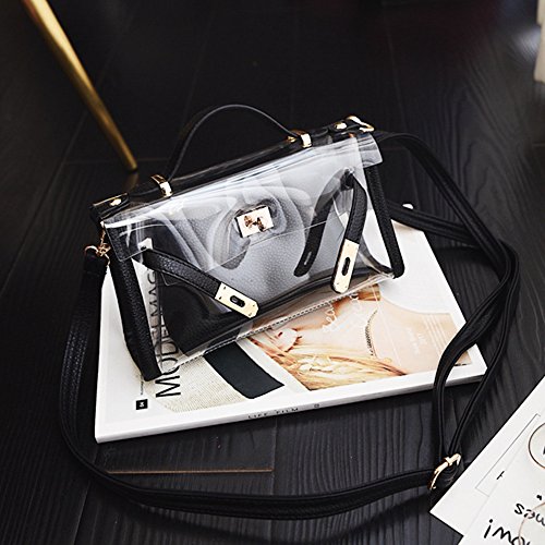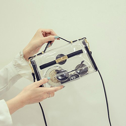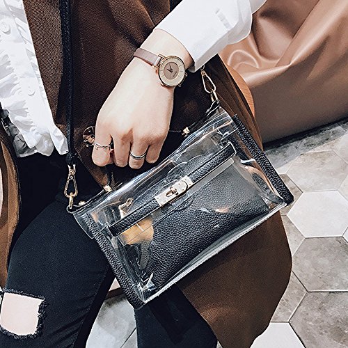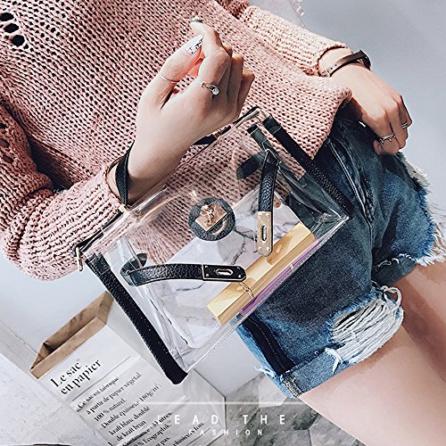 CYCLETRACK クリアバッグ ビニールバッグ レディース 斜めがけ 手提げ ハンドバッグ 2way 人気 おしゃれ (黒)