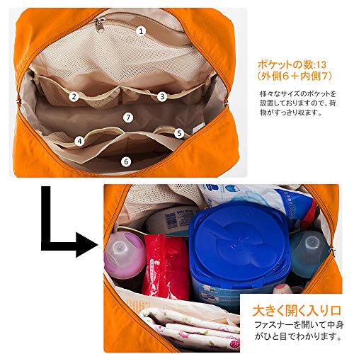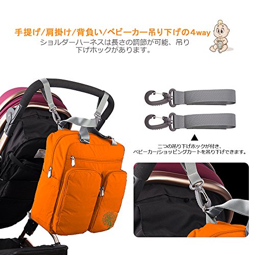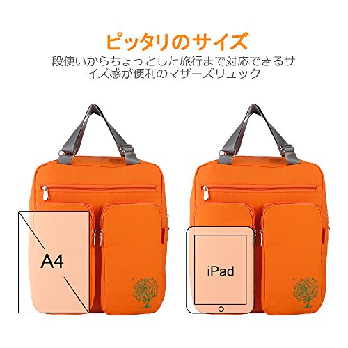 CYCLETRACK マザーズリュック ママバッグ 多機能デイバッグ レディース 赤ちゃん用品収納 大容量 軽量 通学 旅行 出張 出産祝い バックパック 4way (オレンジ)