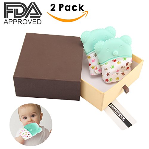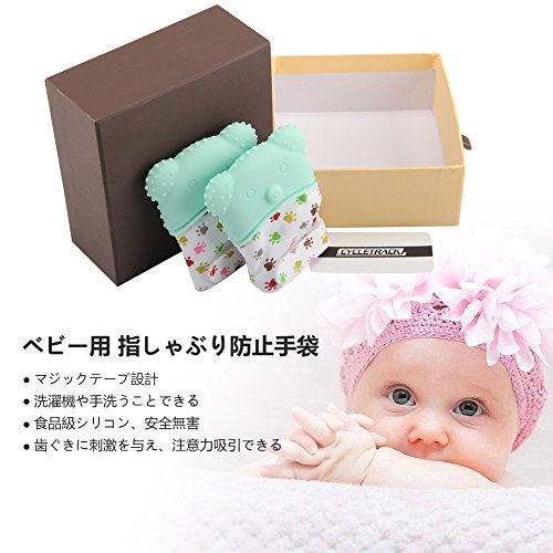 赤ちゃん 歯固め ベビー用 指しゃぶり防止手袋 食品級シリコン 3~12ヶ月対象 新生児用 出産祝い おもちゃ プレゼントケース付き