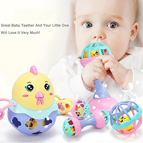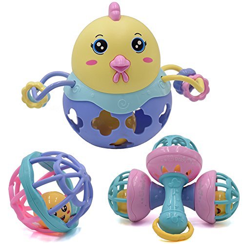 ベビーおもちゃプレイセットwith Rattle、玩具ボール、Shaker、Teether、seprovider漫画チキン幼児6 – 48ヶ月、4のパック