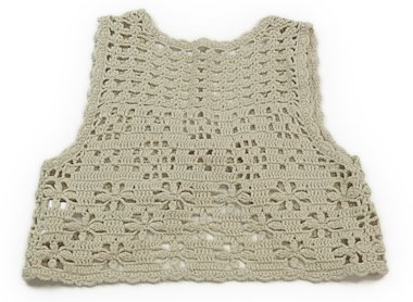 綿100%のカギ針編みベスト。ちょっとボヘミアンにワンピースに合わせても素敵。目立った汚れもなく綺麗なお品物です。