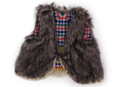 フェイクファーのジレです。裏地がカラフルでキュートですね♪目立つ汚れはなくまだまだお使いいただけそうです。