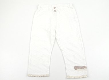 ウエストのゴムは交換穴があります。ストレッチ生地です。目立つシミもなく良品です。