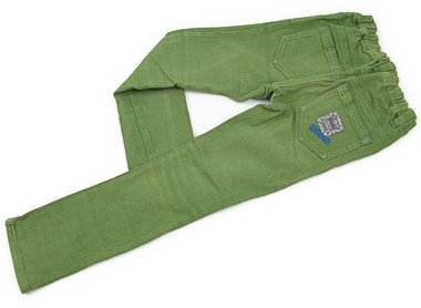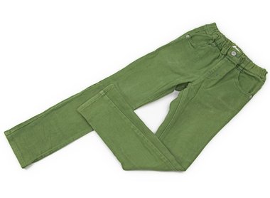 - ストレッチが効いています。ウエストのゴムは交換穴があります。ポケット付近や膝がやや色あせていますが、色味のきれいなグリーンです。