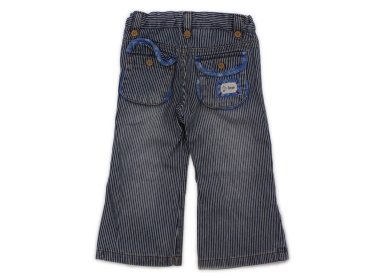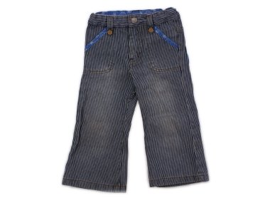 - サイズ調整ゴムが付いています。綿生地でストレッチはありません。デニムのような生地。所々に黄色いシミあり。外遊びや洗い替え用にいかがでしょうか?