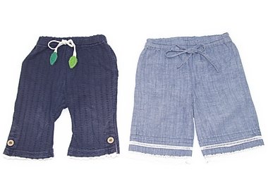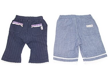 素材ならではの色褪せ感があり、わずかな毛羽立ちはありますが、目立つ汚れはなくまだまだ普段着として活躍してくれそうです。Petit Jamのネイビーハーフパンツはおまけです(色褪せ白っぽい毛羽立ちが全体的にあり)