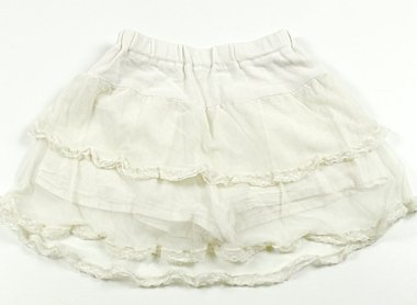 - スカートの中にショートパンツが一体型でついています。ウエストに若干毛羽立ちがありますが目立った汚れはありません。スカート部分はチュールネットです。