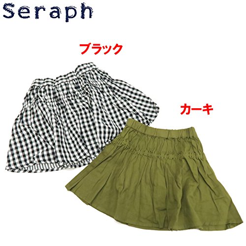 Seraph(セラフ) Wガーゼ先染め「ギンガムチェック・無地」インナーパンツ付きスカート【1603】【C】 110 カーキ(KK)