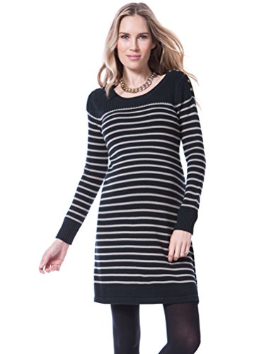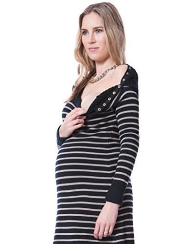 Seraphine セラフィン Hayden マタニティ・ナーシングニットワンピース UKサイズ10 ブラック/サンドベージュボーダー 授乳対応
