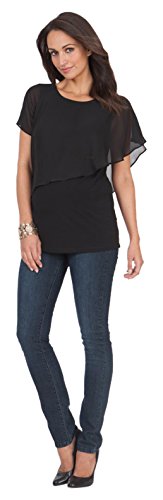 Seraphine セラフィン マタニティトップ Meredith アシンメトリーシアーフルッタースリーブマタニティナーシングトップ イギリスサイズ10 ブラック 授乳対応