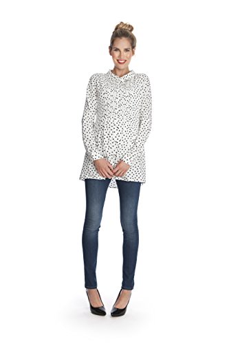 - 人気ブランド「Seraphine(セラフィン)」のマタニティトップ「Happy」。ポルカドット柄が可愛いマタニティブラウス。Aラインの緩やなシルエットは体をふんわりと包み込み、快適な着心地を提供します。ボタウンダウンタイプのマタニティブラウスは、産後の授乳期には簡単に授乳口へアクセスすることができます。また、袖にはロールアップしやすいよう、ロールアップベルトがデザインされています。デザインと機能性を兼ね備えた優秀なマタニティトップは、妊娠中から産後の授乳期まで、長い期間でご着用頂けます。