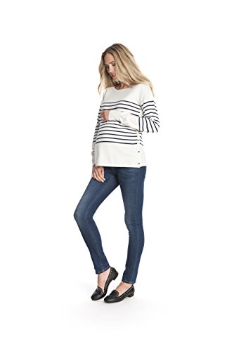 - 人気ブランド「Seraphine(セラフィン)」のマタニティトップ「Molly」。白地にネイビーストライプが可愛いトップスは、授乳対応にもなっているマタニティナーシングトップ。両サイドにデザインされたボタンタイプのサイドポッパーは、トップスの脇から裾まで大きく開くことができます。肩や胸元を露出することなく授乳を行えるので、大変使いやすく人気のデザイン。妊娠中から産後の授乳期まで、長い期間でご着用頂けます。