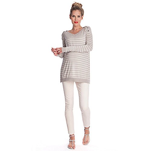 Seraphine セラフィン マタニティトップ Skyla バンブーストライプマタニティナーシングジャンパー サイズXL トープ/アイボリー 授乳対応