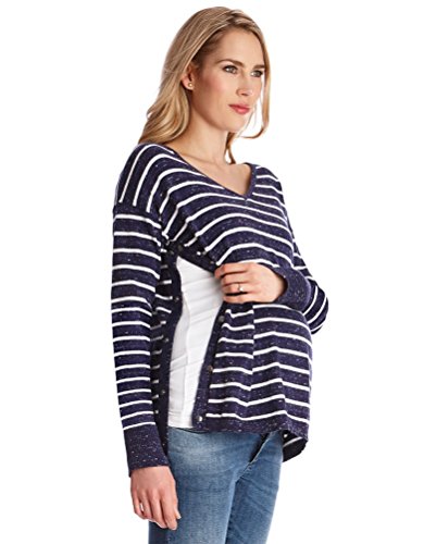Seraphine セラフィン マタニティトップ Poppy コットンカシミヤマタニティナーシングジャンパー サイズXL ネイビーストライプ 授乳対応