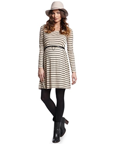 - 人気ブランド「Seraphine(セラフィン)」のマタニティワンピース「Perrie」。肌触りのよいソフトストレッチジャージー素材を使用したワンピースは、使い勝手の良いロングスリーブでこれからの季節にぴったりです。ストレッチの効いた着心地の良い素材は、お腹の大きさに合わせて自在にフィットし、妊娠中のどの時期でも美しくご着用頂くことが出来ます。女性らしいエンパイアラインには、アクセントにベルトなどをコーディネートすれば、ウエストラインがすっきりとし綺麗なフレアーラインの出来上がり。トレンドに左右されない定番のストライプボーダーは、お手持ちのアイテムとも合わせやすく、オリジナルのコーディネートを楽しむことができます。妊娠初期から産後の授乳期まで長くご着用頂けます。