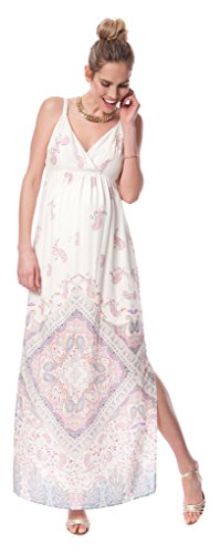 - 人気ブランドSeraphineのマタニティワンピース「Elisha」。夏らしいぺイズリープリントのマキシ丈マタニティワンピース。素材にはソフトレーヨンを使用しており、身体のラインを美しくカバーします。クロスオーバーフロントになっている胸元は、授乳口へのアクセスも簡単に行えて、産後にも使いやすいデザイン。シワになりづらい素材なので、旅行にも持っていきやすく、リゾートにもぴったりです。妊娠中から産後まで長い期間でご着用頂けます。