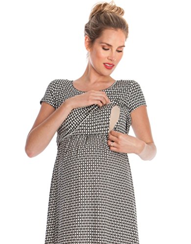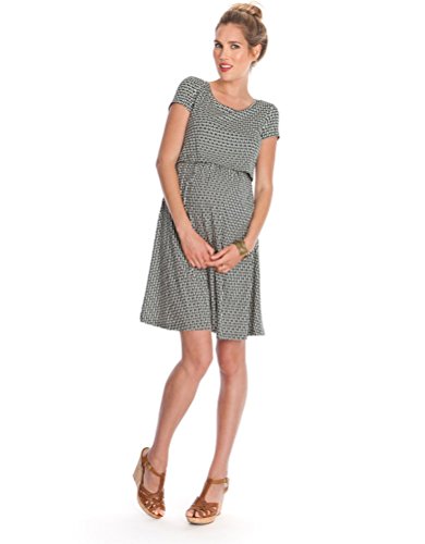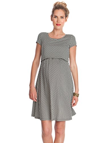 - 人気ブランドSeraphineのマタニティ・授乳兼用ワンピース「Marissa」。 肌触りの良いストレッチジャージー生地にブラックのジオ柄をプリントした可愛いマタニティワンピース。トップ部分は生地が2枚になって重ね着風に。ダブルレイヤーデザインは今シーズンの気分です。 Aラインシルエットのワンピースで妊娠初期から臨月・産後の授乳期もキレイに着用頂けるデザインです。トップの生地の下に授乳口がついているので産後は授乳服としても着用頂けます。