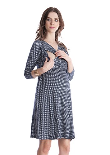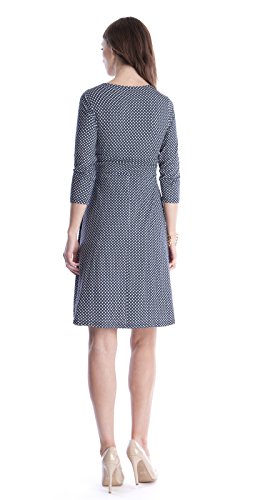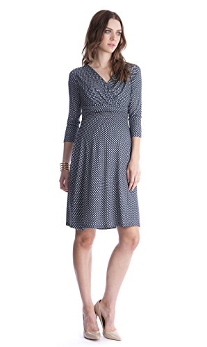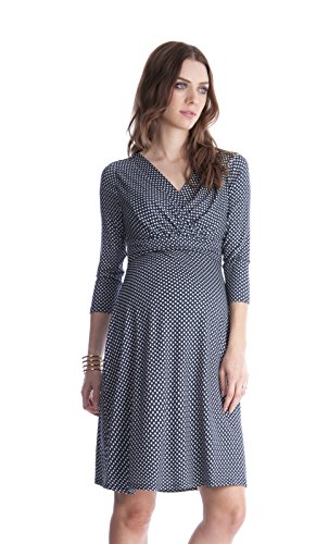 プリントはメーカー表記ではグレー&ホワイトですが、見た目は濃紺&ホワイトに見えるプリントで、派手すぎず、地味過ぎずTPOを選ばずに上品に着こなせます。オフィスシーンやあらたまった場にもぴったりです。Vネックの開きは授乳にも機能的で、ダブルレイヤーで下にも生地があるのがうれしいおつくり。 輸入元・デザイン:イギリス、生産国:中国 特長:妊娠初期~臨月~産後授乳期着用可、ストレッチ素材