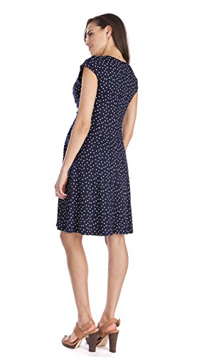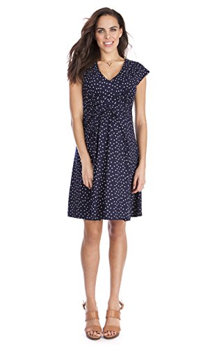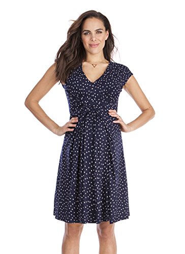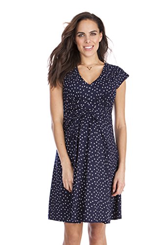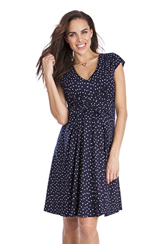 上品で洗練されたネイビーにホワイトドットのプリントとフォーマルやパーティなどドレスアップした機会にも着用できる2つのお色違いで展開しています。上品な雰囲気で、オフィスシーンやあらたまった場にもぴったりです。ウェストラインのギャザーにAラインで胸下に切り替えのあるエンパイアデザインはすっきりしたシルエットになります。 輸入元・デザイン:イギリス、生産国:中国 特長:妊娠初期~臨月~産後授乳期着用可、ストレッチ素材
