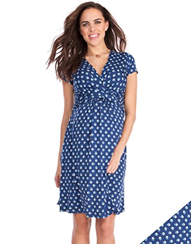 Seraphine セラフィン Paula ショートスリーブフェイクラップマタニティワンピース サイズUK6 ブループリント 授乳対応