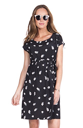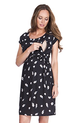 Seraphine セラフィン マタニティワンピース PRIYA プリヤ マタニティ&授乳ワンピース ショートスリーブ ブラックフローラルプリント (UKサイズ8(妊娠前日本サイズ9号目安))