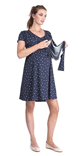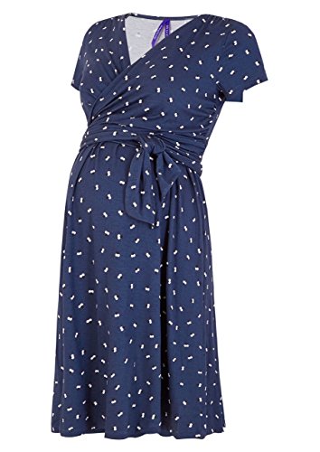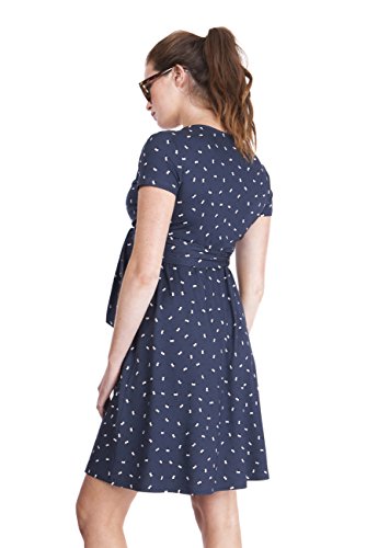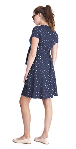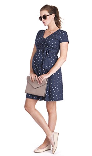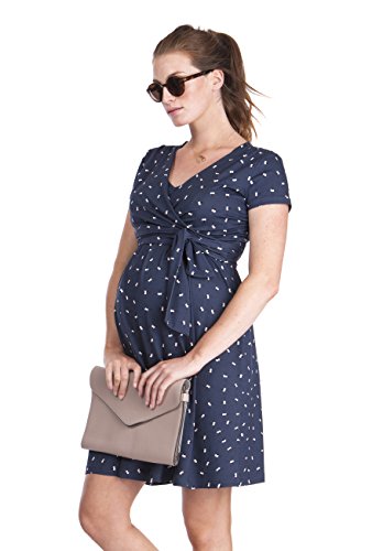 第三子を出産し、ファッションリーダーとしても話題のキャサリン妃が愛用で、世界的に有名になった人気ブランドのセラフィンのネイビーをベースとした変形のドットプリントが華がありつつ上品な2018年春夏新作。胸元はカシュクールのように巻き付けて着用するデザインで、授乳口のところが二重構造になっているので、胸元も見えずに安心です。ベビーシャワー、お出かけから産後のお宮参りなどにもふさわしいワンピースです。マタニティ期間から授乳期間、産後も着用できるデザインが人気。ネイビーベースなので、ジャケットなどを羽織り、オフィススタイルなどきちんとした場から、アクセサリーづかいで華やかな印象にも。 輸入元・デザイン:イギリス、生産国:トルコ 特長:妊娠初期~臨月~産後授乳期着用可