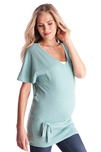オプションのナチュラルスタイル。セラフィーヌの庭のニットのマタニティ&授乳チュニックで柔らかく、軽量なリネンコットン混紡を使用しています。ストレッチに加えて、独立型スナップ・ダウンのたっぷりと豪華なロングラインスタイルは、授乳用でのアクセスします。その側面ができます前中および後に、妊娠のスタイルの定番です。感のあるVネックラインと下に縛るバンプベルトです。ソフトパステルシェードとスタイリッシュ半袖これを季節クローゼットに加えるのに完璧です。55 %リネン45 %コットン平干しして