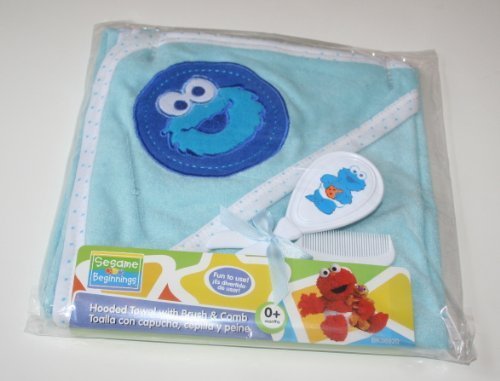 Sesame Street Hooded Blanket With Brush & Comb Set - Blue(COOKIE MONSTER) by Sesame Beginnings [並行輸入品]