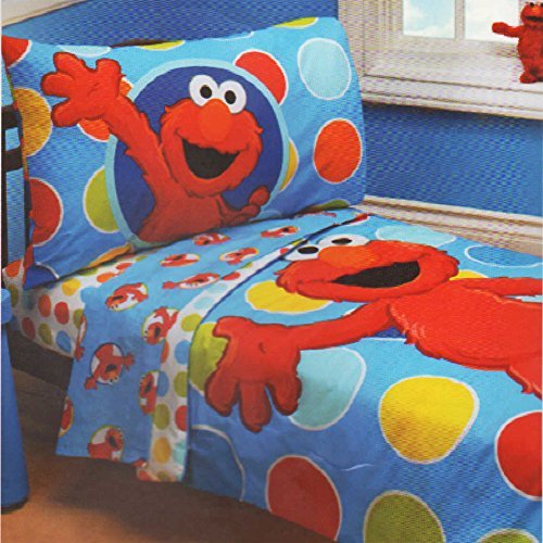 Sesame Street Elmo Dots toddler/crib size comforter, 42 x 57 inches, flat and fitted sheets, and one standard pillowcase., Genuine licensed merchandise., Machine washable., Super-soft microfiber , Fits standard crib or toddler size beds. This set will not fit a twin bed.