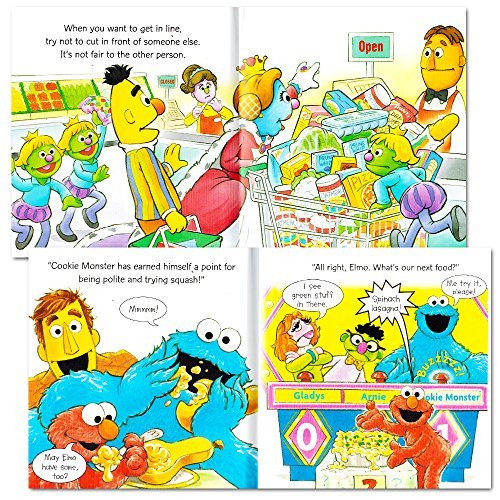 Sesame Street Elmo "My First" manners books set for kids and toddlers, featuring Elmo and friends in 8 different storybooks that teach manners. Colorfully illustrated Sesame Street Elmo Manners Books join Elmo as he teaches sharing and caring. The perfect book to teach the concept of manners. Includes the following titles: (1) Let's Share; (2) Be Polite; (3) Please and Thank You; (4) Good for You; (5) Taking Turns; (6) Be a Friend; (7) All About Feelings; (8) Working Together. Sesame Street Elmo manners books for toddlers and kids are 16 pages each and measure 5x5 inches, soft cover. This Sesame Street manners books set for kids is durable and high quality. These easy to read, richly illustrated books will introduce young children to the joys of books and reading! Perfect for teaching manners to kids and toddlers. Sesame Street Elmo party favors, party supplies.