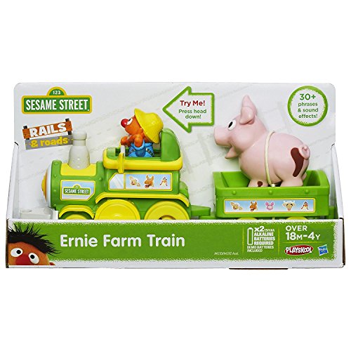 Little ones will love rolling the Ernie Farm Train all around the neighborhood! For fun phrases about animals, vegetables and colors, press Ernie’s head down! Playskool and all related characters are trademarks of Hasbro. Sesame Street and associated char