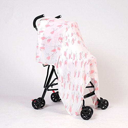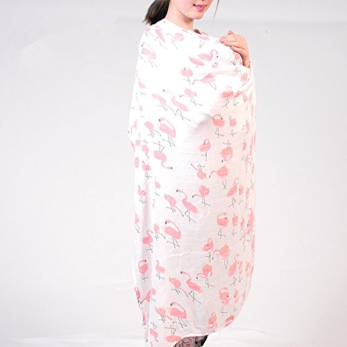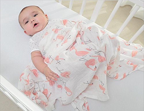 Setaria Viridis モスリンコットン ベビー おくるみ 夏用ベビーブランケット 入浴用 ベビーバスタオル 柔らかく ガーゼ 毛布 出産祝い プレゼント (フラミンゴ)