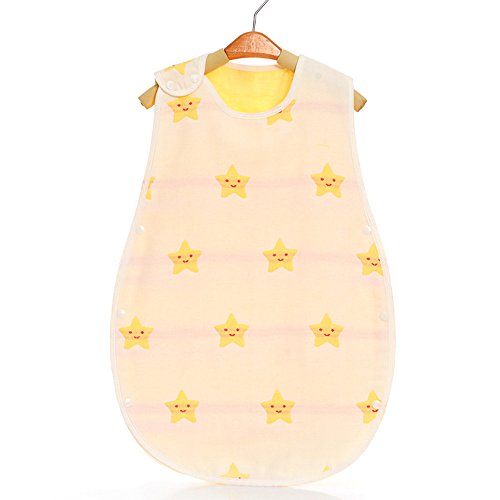 Setaria Viridis 100% コットン6重ガーゼ ベビースリーパー 赤ちゃん寝袋 キッズパジャマ 出産祝い 良い肌触り (L, 黄色星)