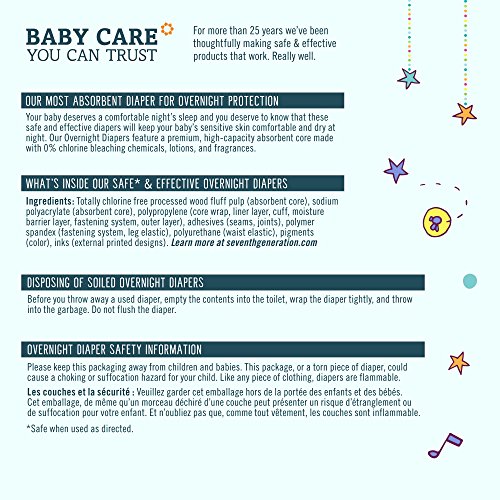 Enjoy Seventh Generation Baby Overnight Diapers Stage 4 24 Diapers. Free Of Chlorine Processing Means That The Wood Pulp Used In The Overnight Diapers Has Not Been Processed With Chemicals Containing Chlorine