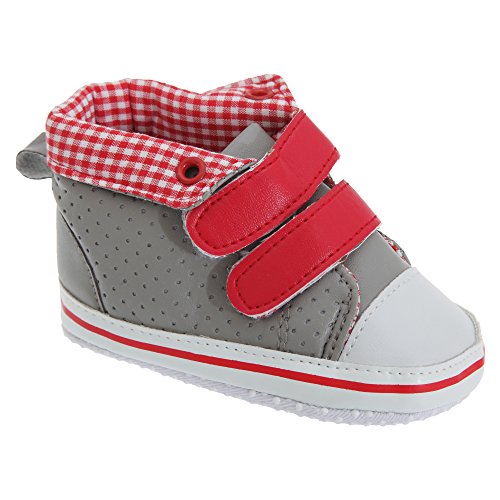 赤ちゃん・ベビー用 ボーイズ ギンガムチェック裏地 ベルクロストラップ ハイカットベビースニーカー 赤ちゃん靴 男の子 (6-12ヶ月) (グレー)