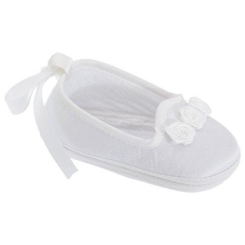 赤ちゃん・ベビー用 ガールズ フェークサテン地 お花つき ベビーシューズ 赤ちゃん靴 おでかけ・フォーマル 特別な日に 女の子 (12-18ヶ月) (ホワイト)