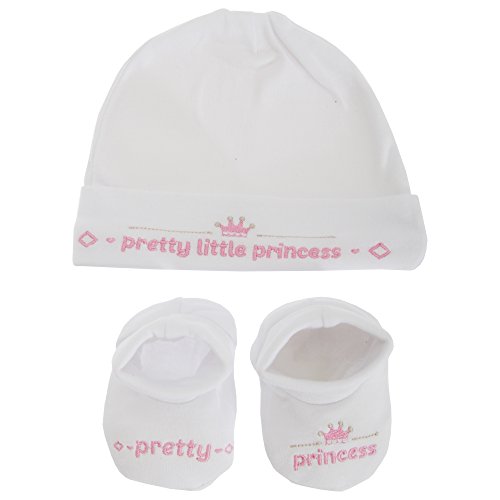 赤ちゃん・ベビー リトルプリンス/プリンセス 小さな王子様/お姫様 ベビー用品 2点ギフトセット 帽子・ブーティー (0-3ヶ月) (ホワイト/ピンク)