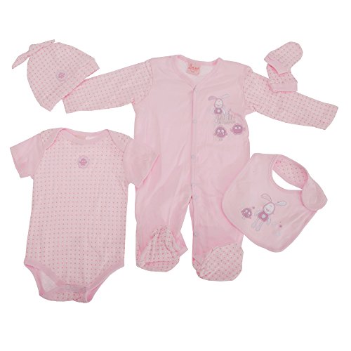 赤ちゃん・ベビー かわいいこぐま・こうさぎのデザイン ベビー用品・ベビー服 5点ギフトセット ベビーシャワー プレゼント (スタイ・帽子・肌着・カバーオール・ミトン) (3-6ヶ月) (ピンク(ウサギ))
