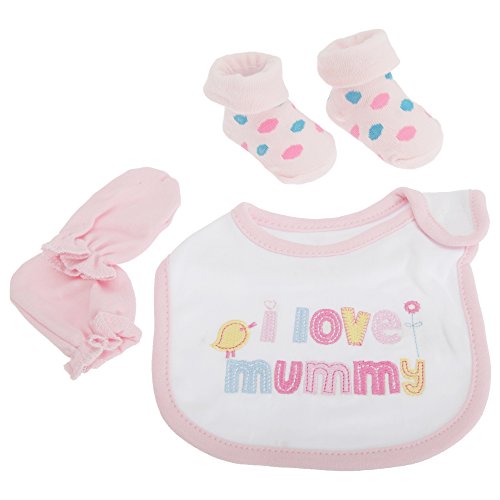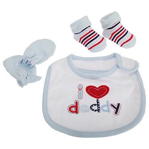 赤ちゃん・ベビー アイ・ラブ・マミー/ダディー I Love Mummy/Daddy ベビー用品 3点ギフトセット スタイ・ミトン・ソックス (ワンサイズ) (ブルー/ホワイト)