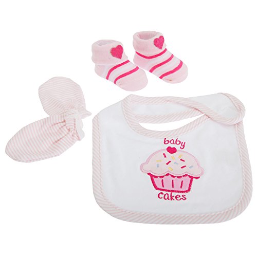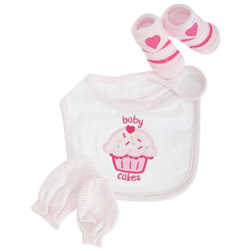 赤ちゃん・ベビー用 ガールズ カップケーキデザイン ミトン・ビブ・ソックス 3点 ギフトセット 女の子 (ワンサイズ) (ピンク/ホワイト)