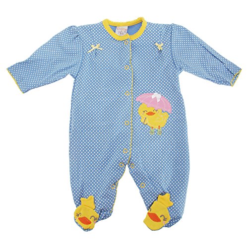 赤ちゃん・ベビー用 ガールズ ひよこのデザイン ドット柄 長袖ボディースーツ 長袖ロンパース オールインワン 女の子 (新生児) (ブルー/イエロー)
