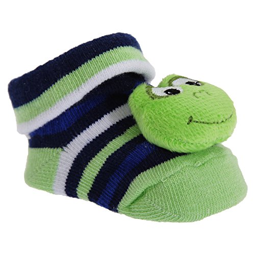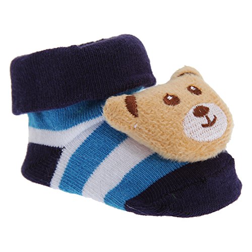 ベビー用コットンリッチソックス。ガラガラ入り。折り返しトップ。立体キャラクターつき。滑り止めグリップソール。素材:綿74%、ポリエステル24%、スパンデックス2%。低温で洗濯機洗い可。