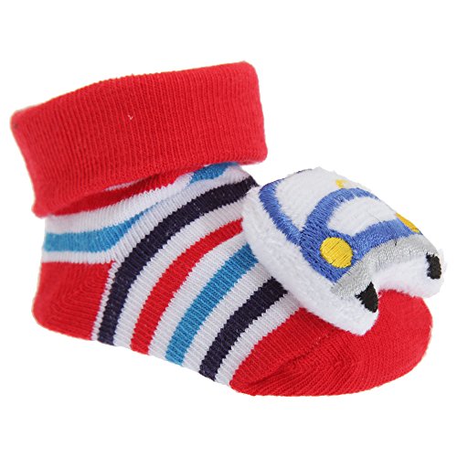 赤ちゃん・ベビー用 ボーイズ ガラガラ入り 滑り止めグリップソール ベビーソックス 靴下 スリッパソックス (1足組) 男の子 (ワンサイズ) (レッド/くるま)
